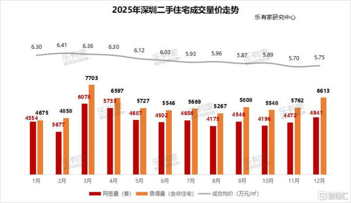 比如深圳,据乐有家研究中心数据,2025年1月深圳二手住宅整体成交均价还能维持在约6.3万/平,到了12月深圳二手住宅整体成交均价回到约5.75万/平,整体调整幅度约8.7%。