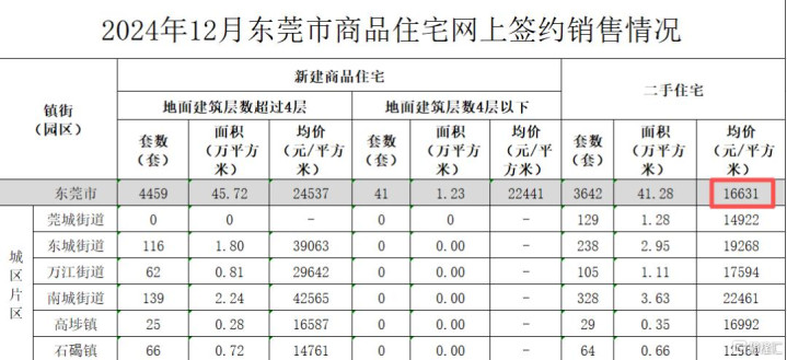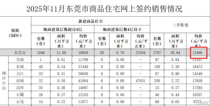 东莞的市场,根据东莞网签数据,2024年12月二手住宅整体成交均价约16631元/平,到了2025年11月二手住宅整体成交均价下至13466元/平,调整幅度约19.03%。