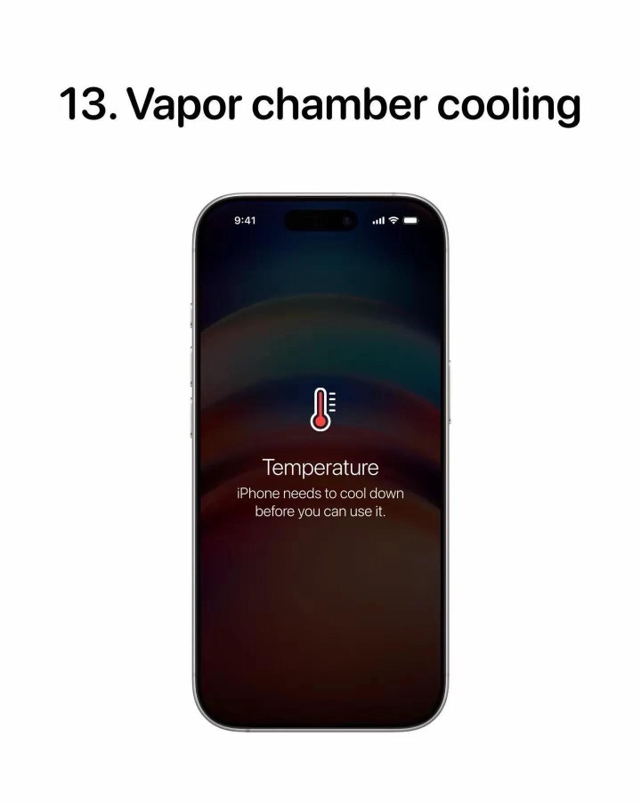 这一代表现最惊艳的是散热系统的革新。苹果首次采用VC均热板散热架构,通过激光焊接将VC均热板与铝金属机身直接连接,热传导效率提升40%。在25℃室温环境下,连续玩游戏两小时机身只是轻微温热,20轮极限压力测试后最高温仅43℃,彻底解决了前代发热降频的问题。