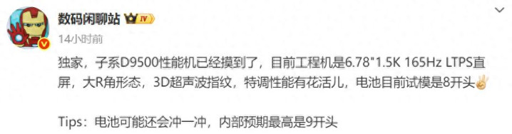 但也有可能命名为天玑9500 Elite,不管如何命名,性能上的表现都不会有什么压力,况且更值得关注的是,爆料提到的“特调性能有花活儿”。