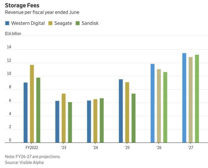 分析师预计今年内存芯片和硬盘的价格将保持高位,这可能会支撑其高企的市场价值。但该行业历来存在残酷的周期性波动,价格下跌往往会导致生产商亏损,并使其股价暴跌。上一次出现这种情况是在2023年,当时美光、西部数据、希捷和海力士均出现了年度运营亏损。