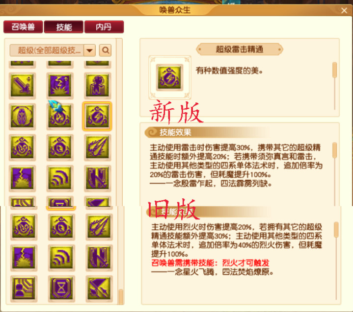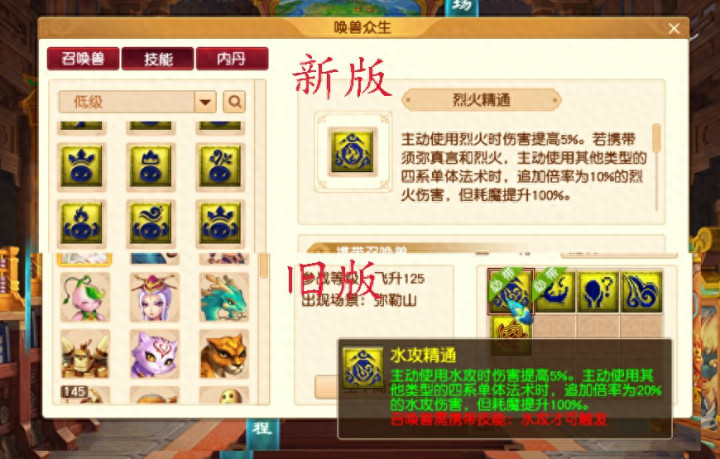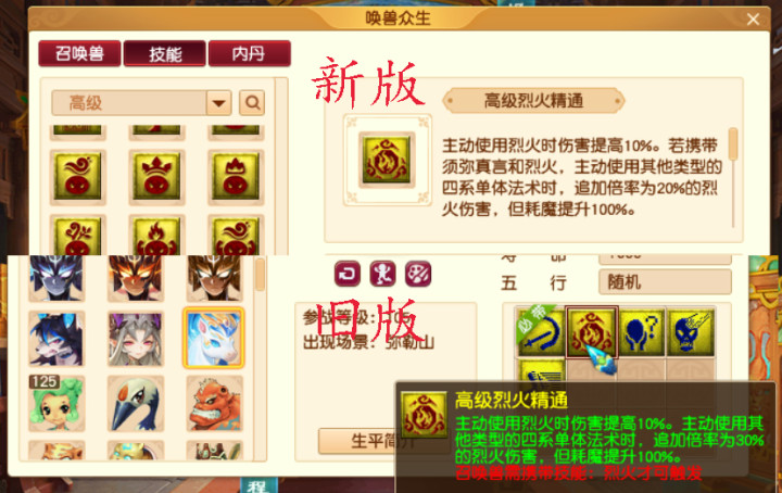 再看对应的四个内丹,现在修改增加了一个,提升的效果受召唤兽等级的影响。原版没有这一条,估计是只能化圣号玩,不改变低等级的PK格局。