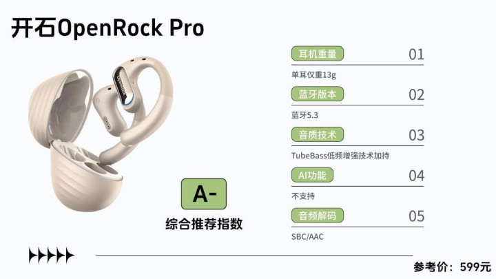 音质表现上,OpenRock Pro内置16.2mm大动态重低音单元,结合Tube Bass低频增强技术,能够呈现厚实而富有冲击力的低音效果,显著提升了音乐的沉浸感。耳机采用高通核心芯片与aptX音频解码技术,不仅提高了音频解析的精细度,也优化了无线传输效率,确保了高音质的稳定还原。